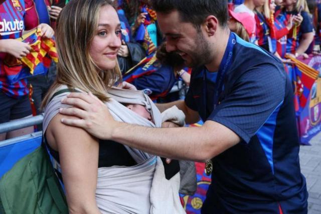 女足欧冠决赛终场哨响,球场上的巴萨球员齐齐举起双臂,替补席上的队友也集体冲到场内,31岁的红蓝少帅霍纳唐·希拉尔德斯掩面跪地,简单平复情绪后就来到场边。在球场一侧的看台下,希拉尔德斯与妻子相拥。他朝妻子的怀里看了看,旋即无法抑制住泪水。而被妻子小心地藏在怀里的,正是希拉尔德斯不到10天前刚刚出生的儿子。